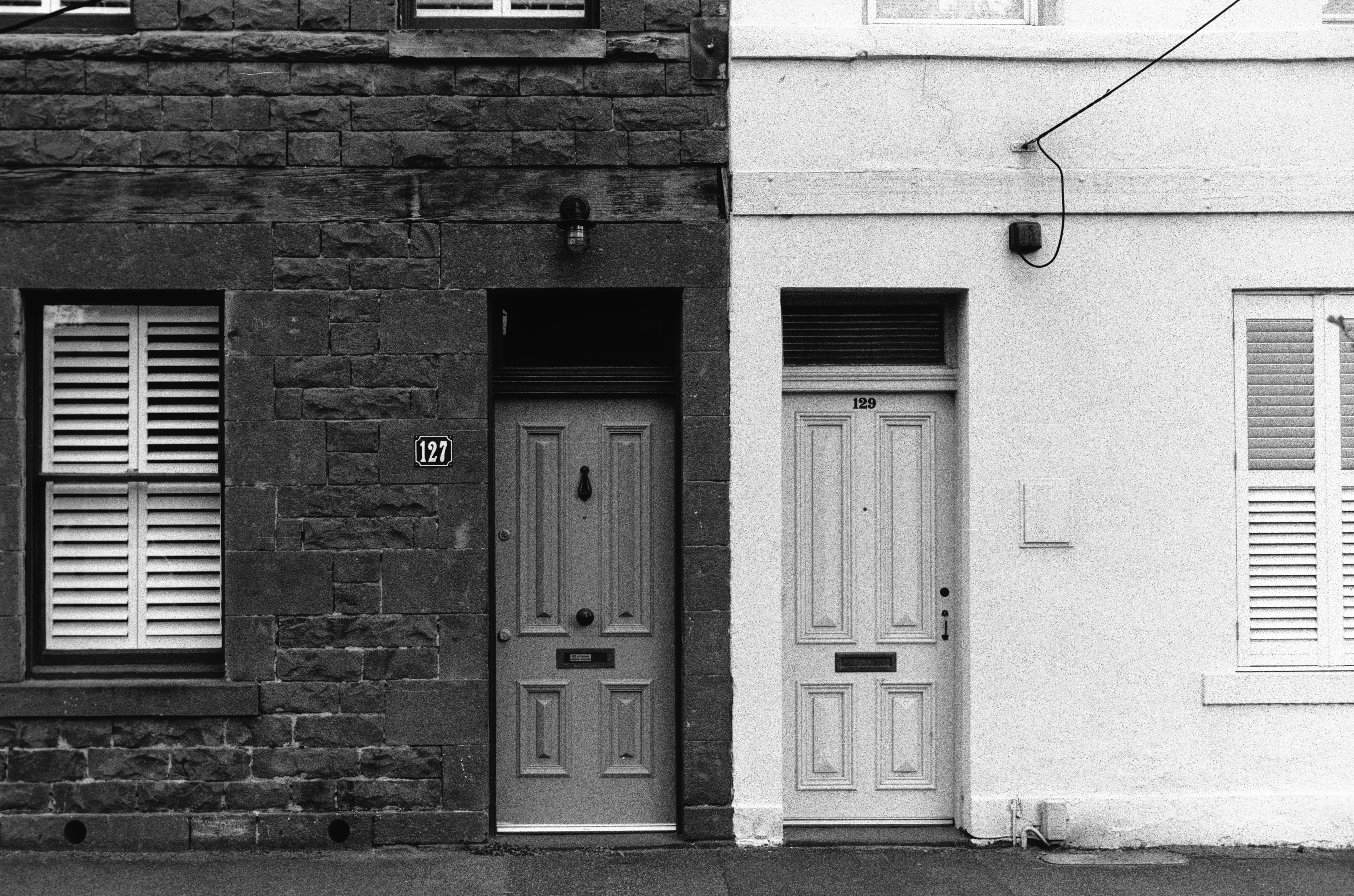 2023 was shot on a 50mm lens on Kodak Double X 35mm film. The composition is tighter, but reveals a lot more detail in the frame for the eye to explore. The lighting and shadows make it. 2025 was shot on a 40mm lens with Ilford Pan 100 35mm film. There’s more happening in the wider frame, but less to examine in detail. The wall seems too far away.