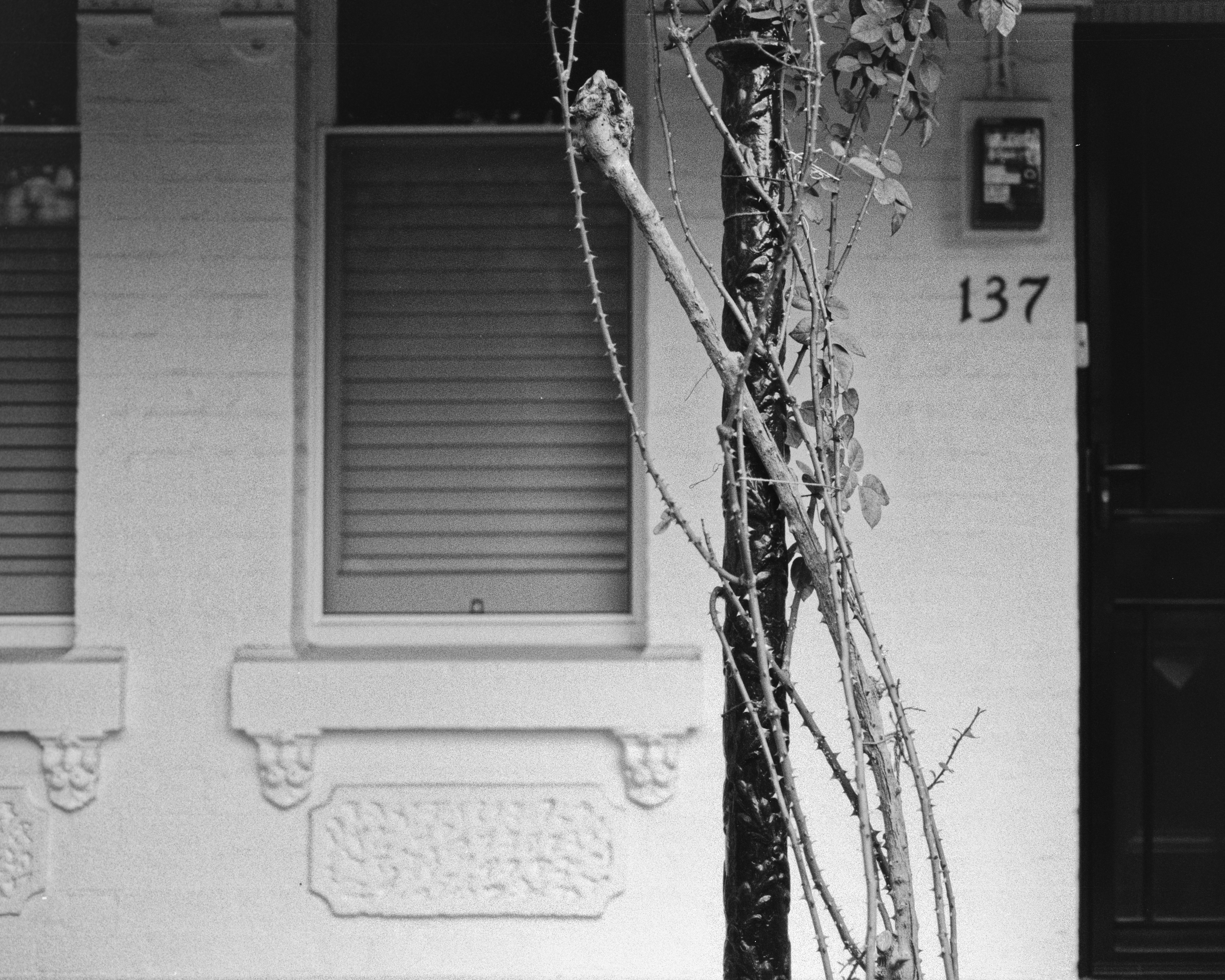 2023 was shot on a 50mm lens on Kodak Double X 35mm film. The composition is tighter, but reveals a lot more detail in the frame for the eye to explore. The lighting and shadows make it. 2025 was shot on a 40mm lens with Ilford Pan 100 35mm film. There’s more happening in the wider frame, but less to examine in detail. The wall seems too far away.